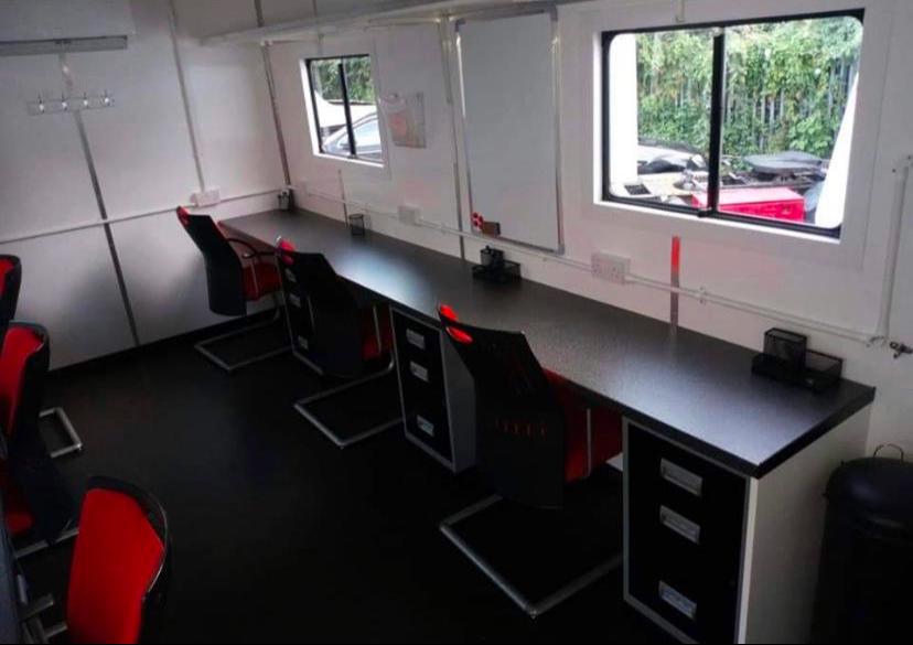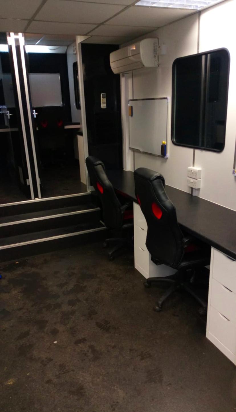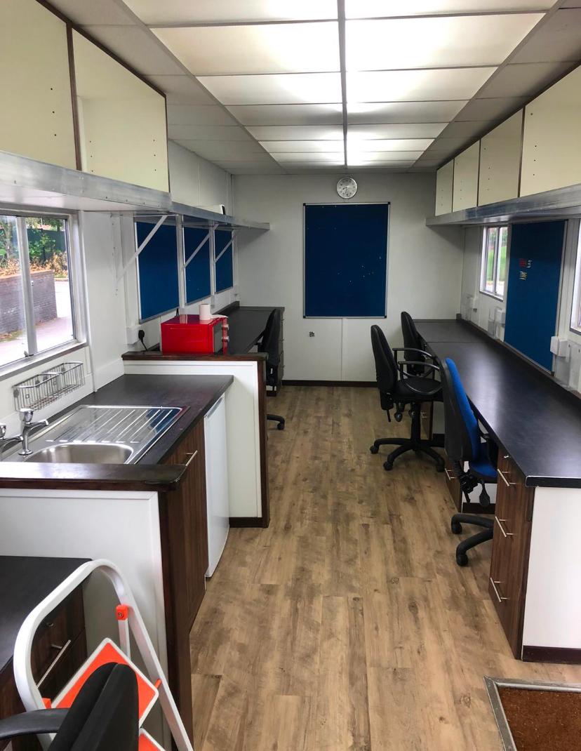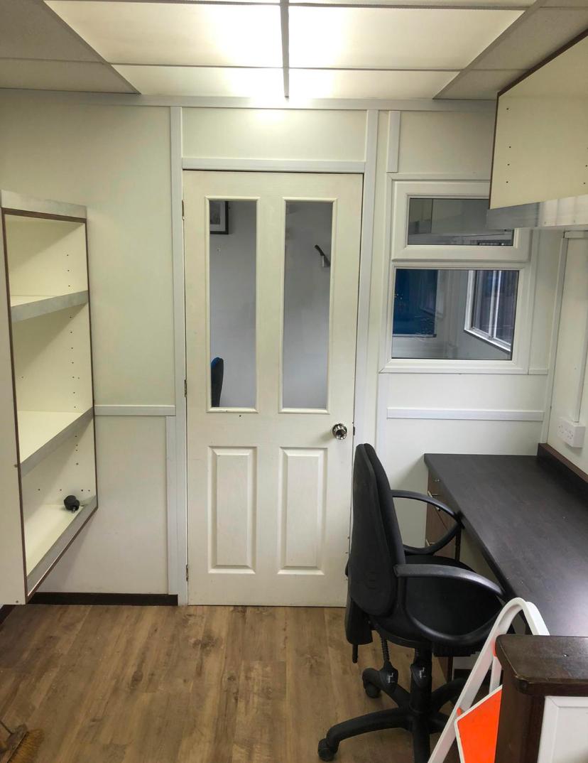 Fully heated production office, storage areas include radio cupboard, drawer packs, various file and A4 document holders, cork boards.