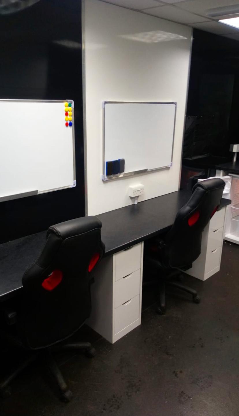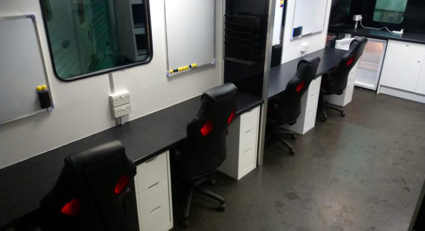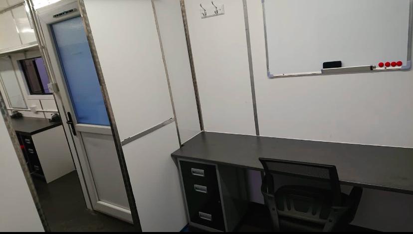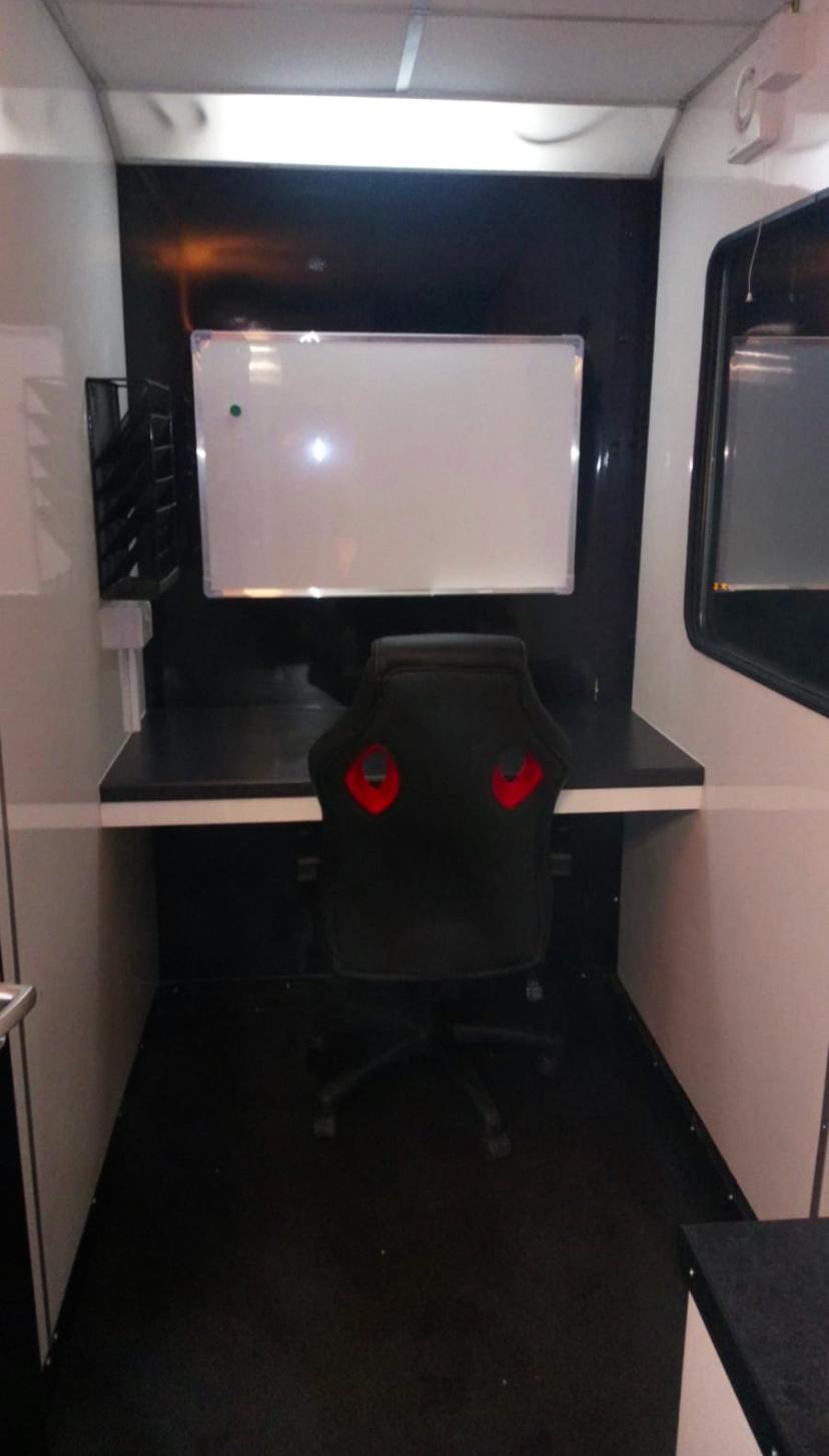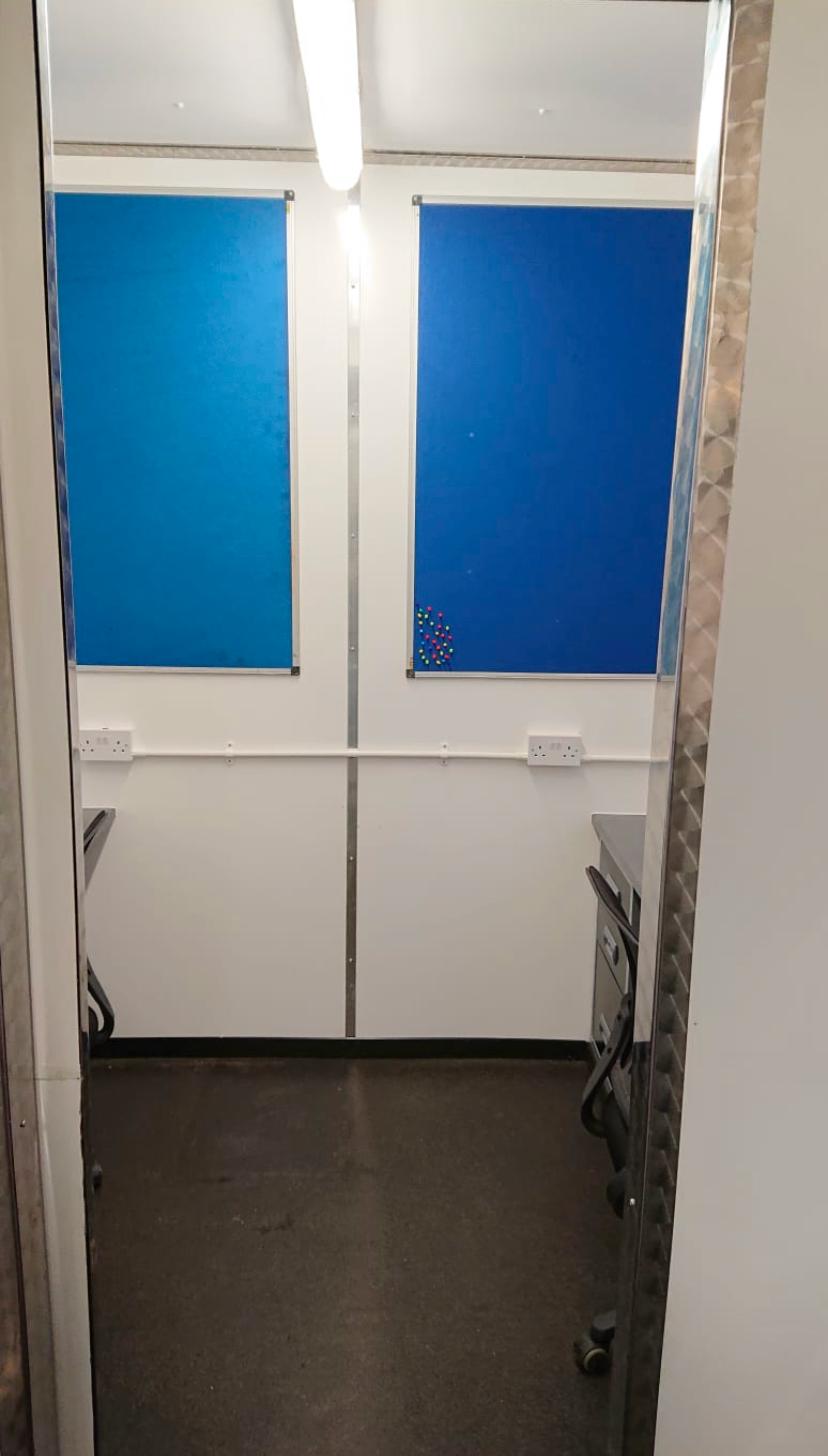 Fully heated production office, storage areas include radio cupboard, drawer packs, various file and A4 document holders, cork boards.
